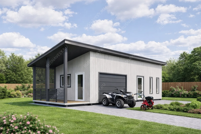 • Навес к частному дому для автомобиля ГРИМСТАД