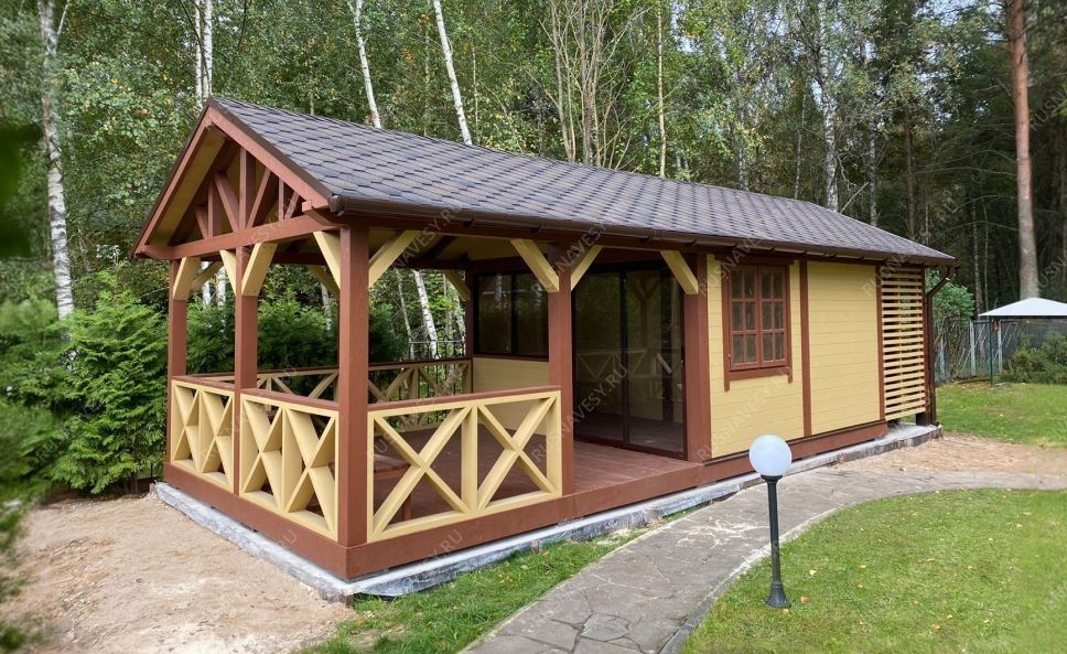 Вся конструкция обрабатывается декоративным деревозащитным составом в 2 слоя - при необходимости дополнительно.