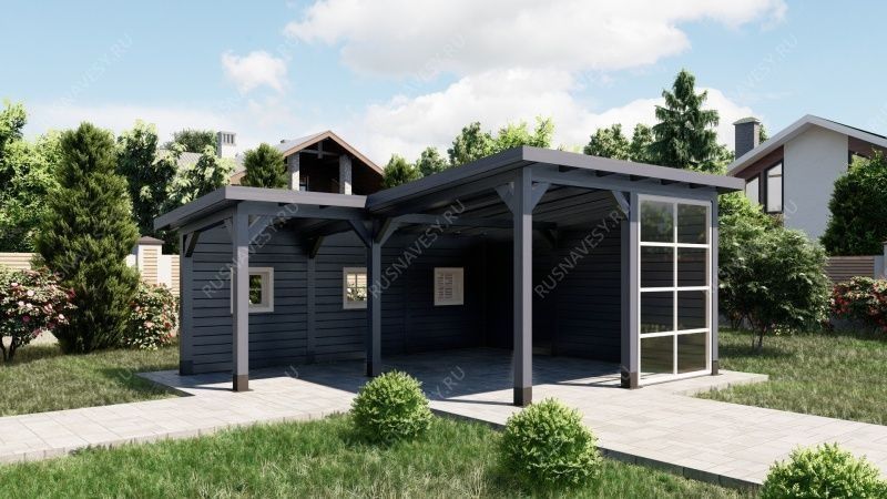 • Навес к частному дому для автомобиля ГРИМСТАД