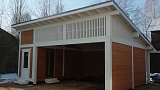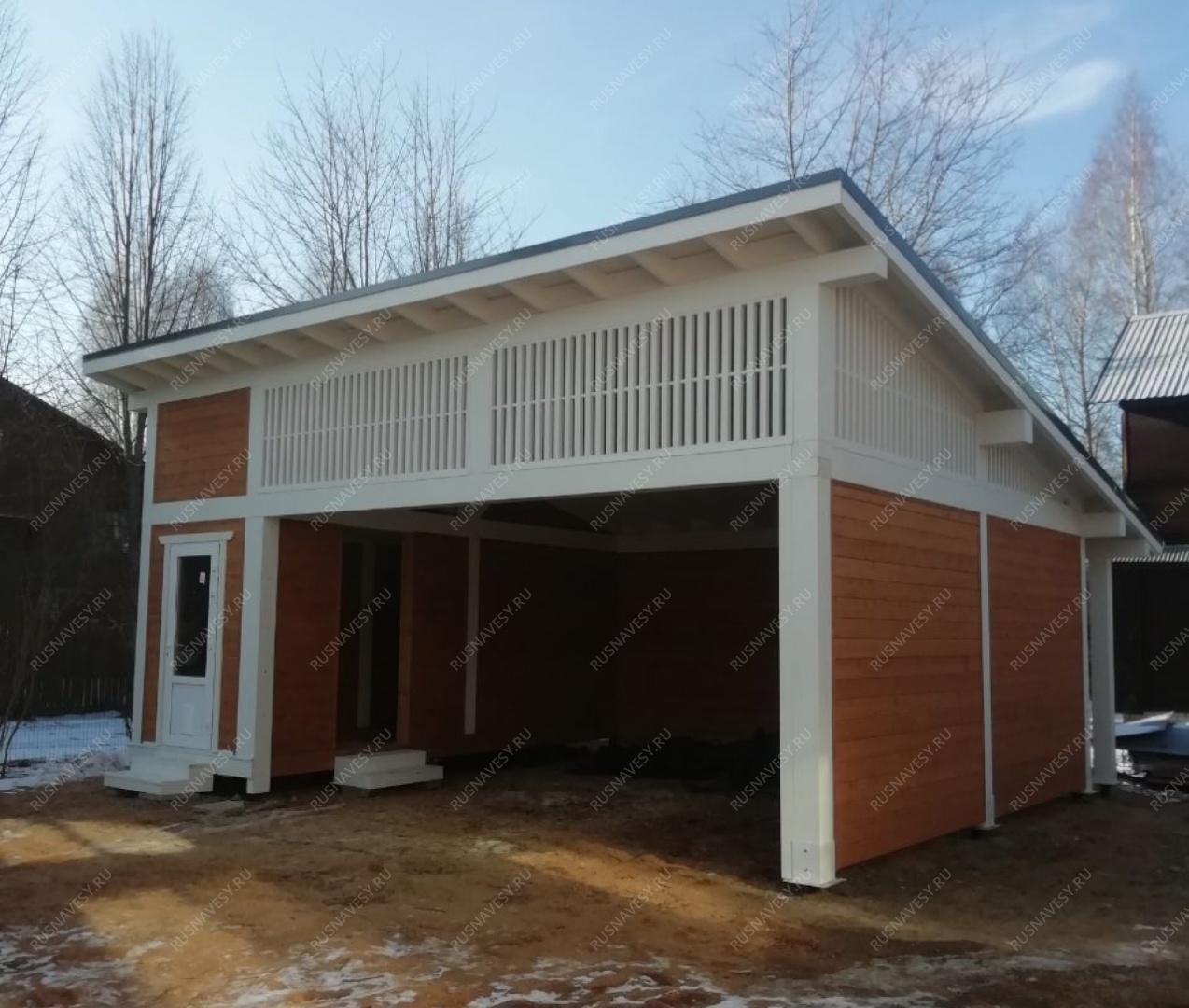 Односкатный навес для машин БРИКС — это функциональный комплекс, сочетающий парковочную зону для двух автомобилей и просторный хозблок, объединённые под общей крышей. Габариты конструкции 6×8 метров обеспечивают удобное размещение транспорта и дополнительное место для хранения инвентаря, садово-огородной техники или сезонного снаряжения. Односкатная крыша отличается простотой, экономичностью и эффективным водоотведением — осадки быстро стекают в одну сторону, не задерживаясь на поверхности. Каркас выполнен из клееного бруса 190х190 мм, что исключает риски растрескивания и деформации даже при значительных температурных перепадах. Хозблок оснащён металлической дверью и деревянным окном, обеспечивающим естественное освещение. Отделка наружных и внутренних стен имитацией бруса создаёт аккуратный и эстетичный облик, а жёсткое замковое соединение «шип‑паз» предотвращает образование зазоров. В качестве кровельного покрытия используется гибкая черепица "Shinglas", однако есть возможность выбрать и другой материал по вашему желанию.
